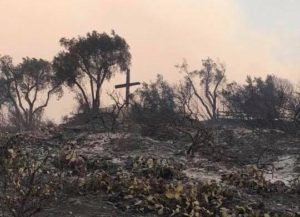It was captioned “The Cross stands! This is definitely a sign from Him.” It was a relief to see a photo of a familiar part of home still standing. So much of it looked unfamiliar as I was watching the news coverage of the fire and getting photos left and right from friends and family in the area. I felt a piece of my soul return when I saw the Cross still standing there, tall and strong.